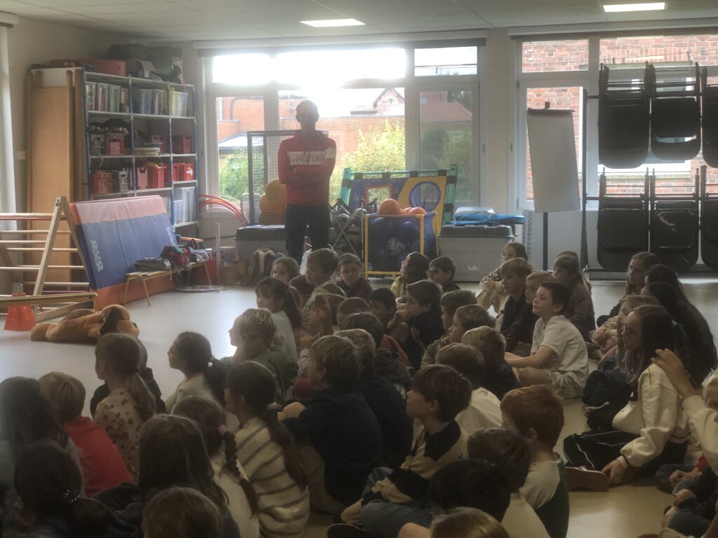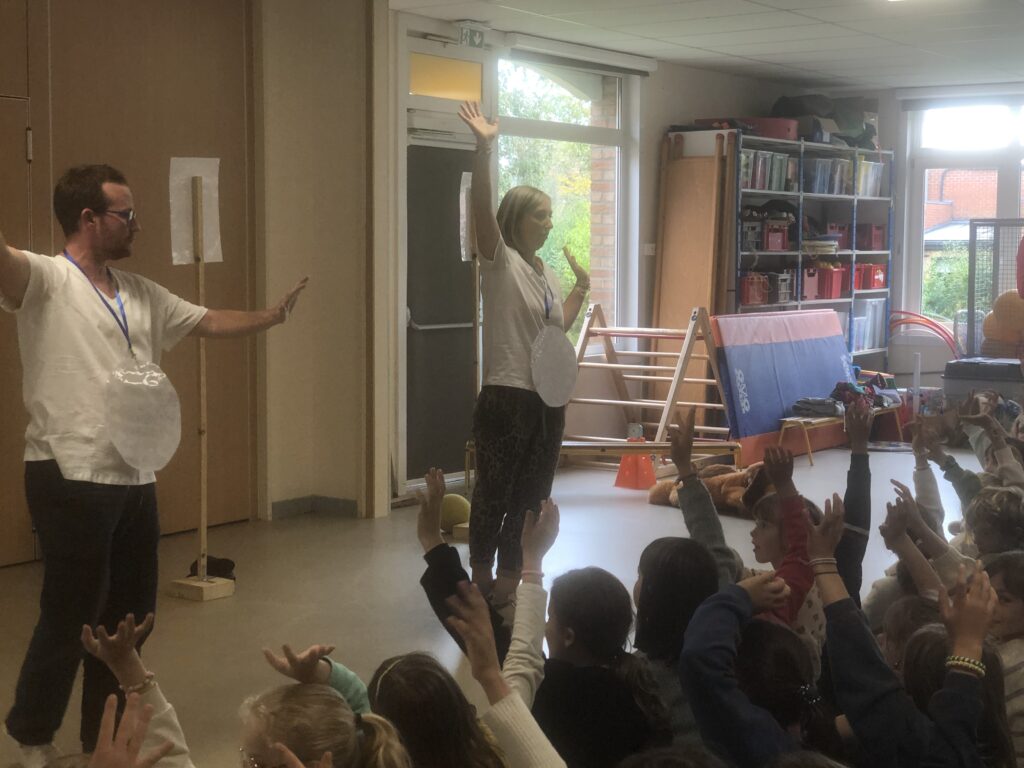 Dans le cadre de notre projet d’année sur la communication non violente et la gestion des émotions, tous les élèves de l’école ont pu assister à un » confestacle »
